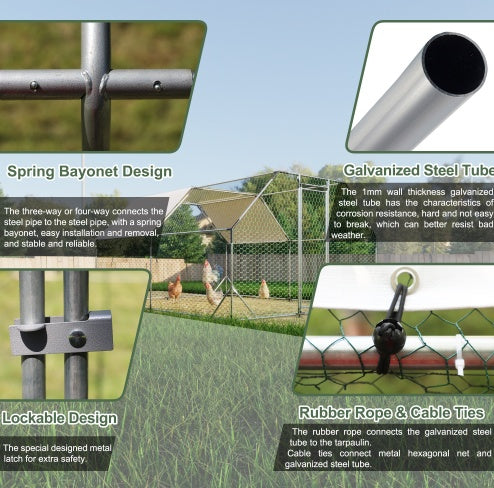 - Featuring galvanized coop, robust steel tubes with eco-friendly power coating finishing, guaranteed to last for years. The coating is protective and resists rust, corrosion, and fading so that the coop is weatherproof and of great durability.