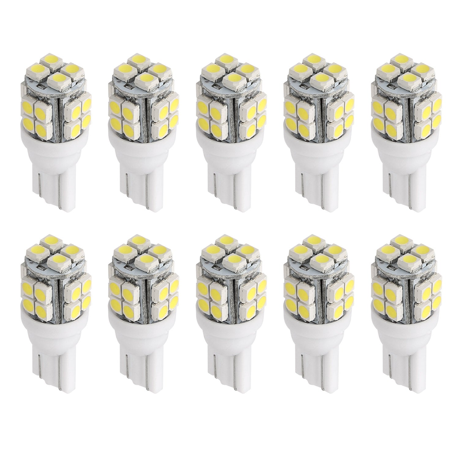 10Pcs 12V T10 LED Light Bulb Wedge Base Interior Dome Map LED Lights License Plate Trunk Side Positioning Lights 6000K White