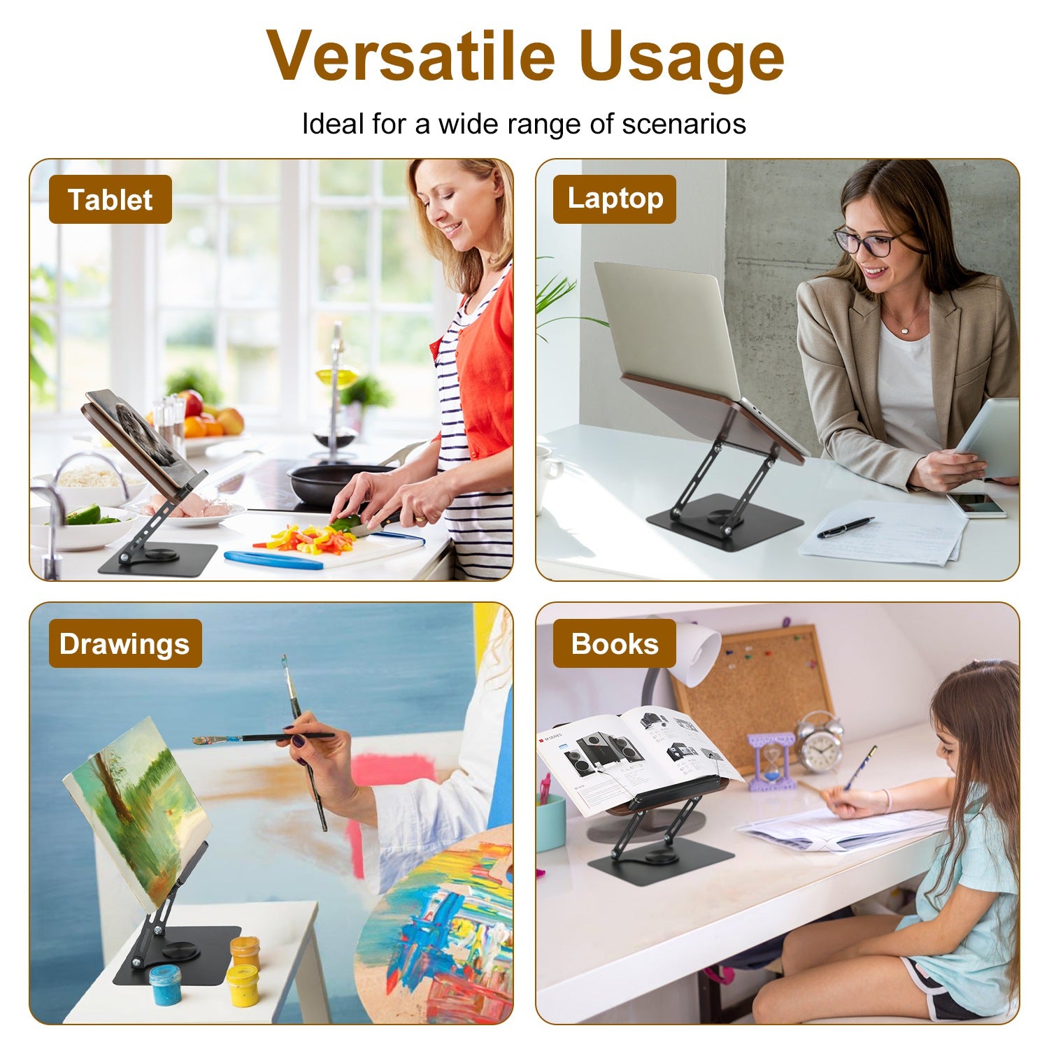 - * Adjustable & Rotatable Design*: Equipped with an adjustable arm, the holding board and the base are 180° rotatable, which allows you to adjust the height from 1.57in to 15.35in, great to help alleviate strain on the neck, shoulders, lower back and keep correct posture. Besides, the base is 360° rotatable, providing you with the convenience to adjust it to any desired angle for optimal book viewing.