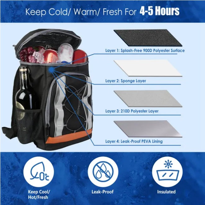 1Pc Cooler Backpack 36 Can Leakproof Insulated Cooler Backpack