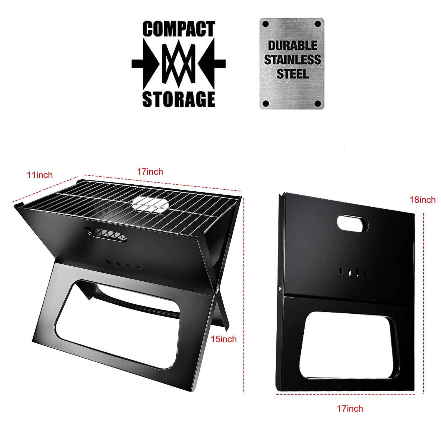 - **Easy Setup*: Simple two-step set up makes this grill a must for grilling on the go. When it is unfolded, it forms a triangular support on ground to stay stable during use.