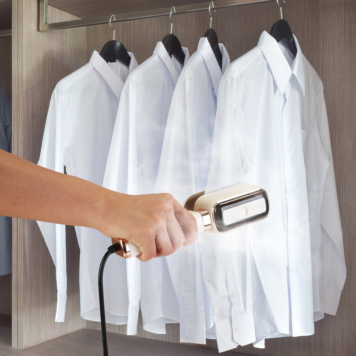*3 In 1 Travel Steamer*:Space is often limited,and carrying multiple devices can be cumbersome when travelling. Featured with innovative 180° rotating head design,this handheld steamer combines 3 essential functions in one device:flat iron,hanging steamer and clip steamer. Hanging steamer is perfect for removing creases from suits and dresses,flat iron function presses out wrinkles on delicate fabrics,and clip steamer is useful for small areas such as collars and cuffs.