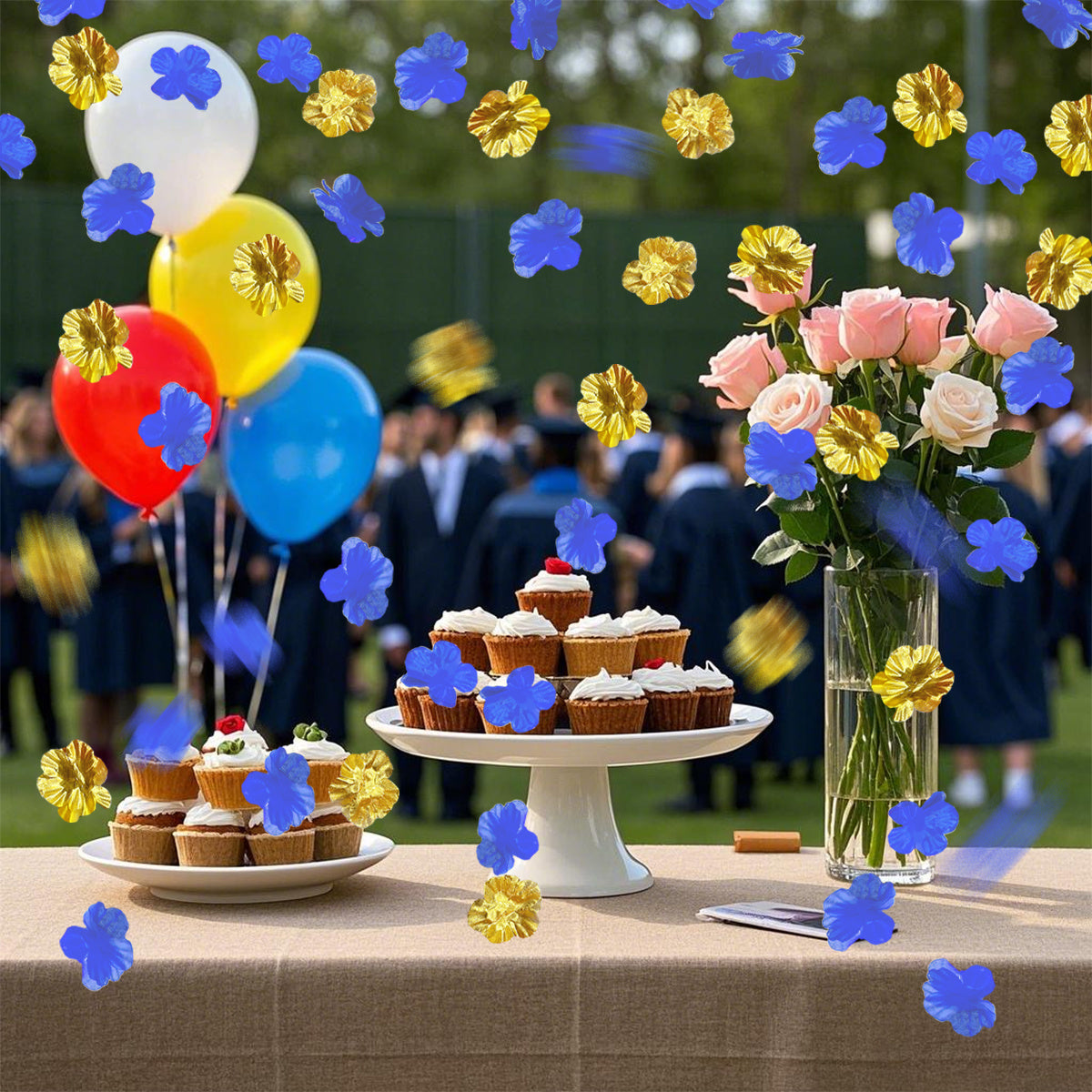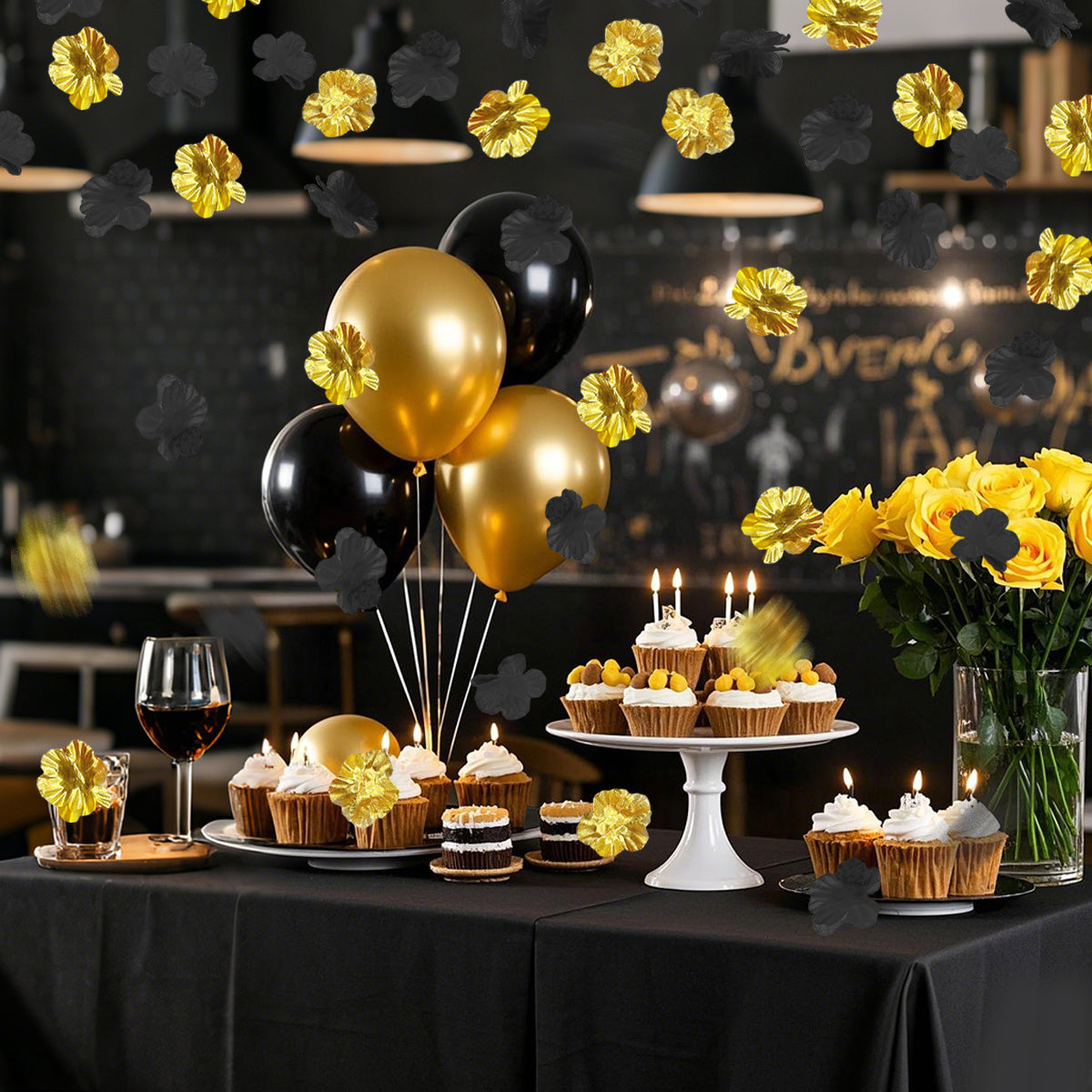 Specifications Material:Polyester Color: Black, Golden, Red, Blue, Green, Purple Size:6.5cm/2.55inch Package contents: 200 Pieces Decoration Silk Petals