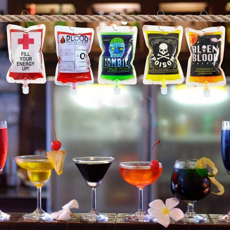 21-pack Halloween Blood Drink Bags, Reusable Blood Cup Containers With Funnels, Reusable Drink Containers For 'blood' Drinks At Themed Parties