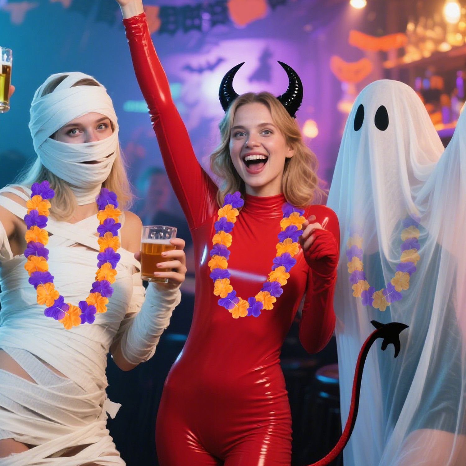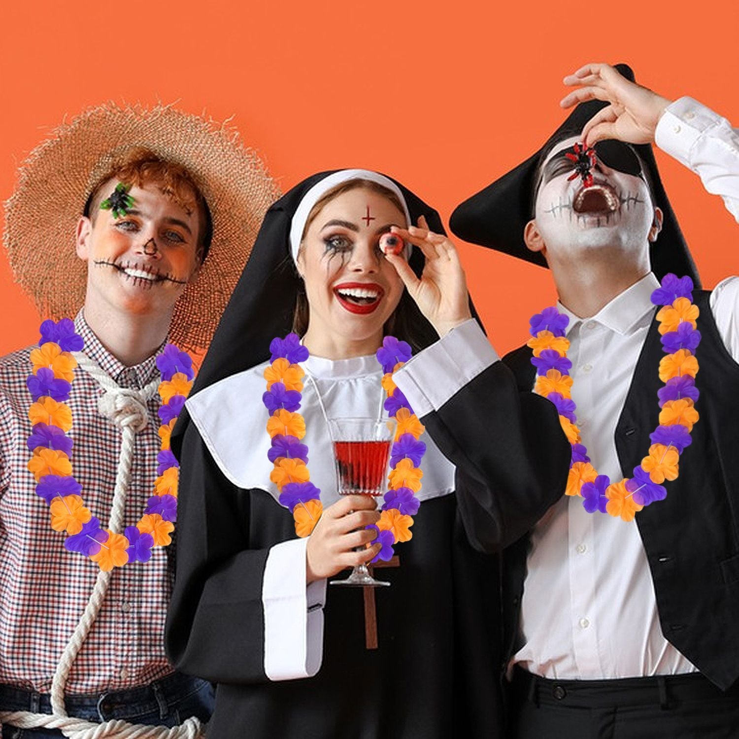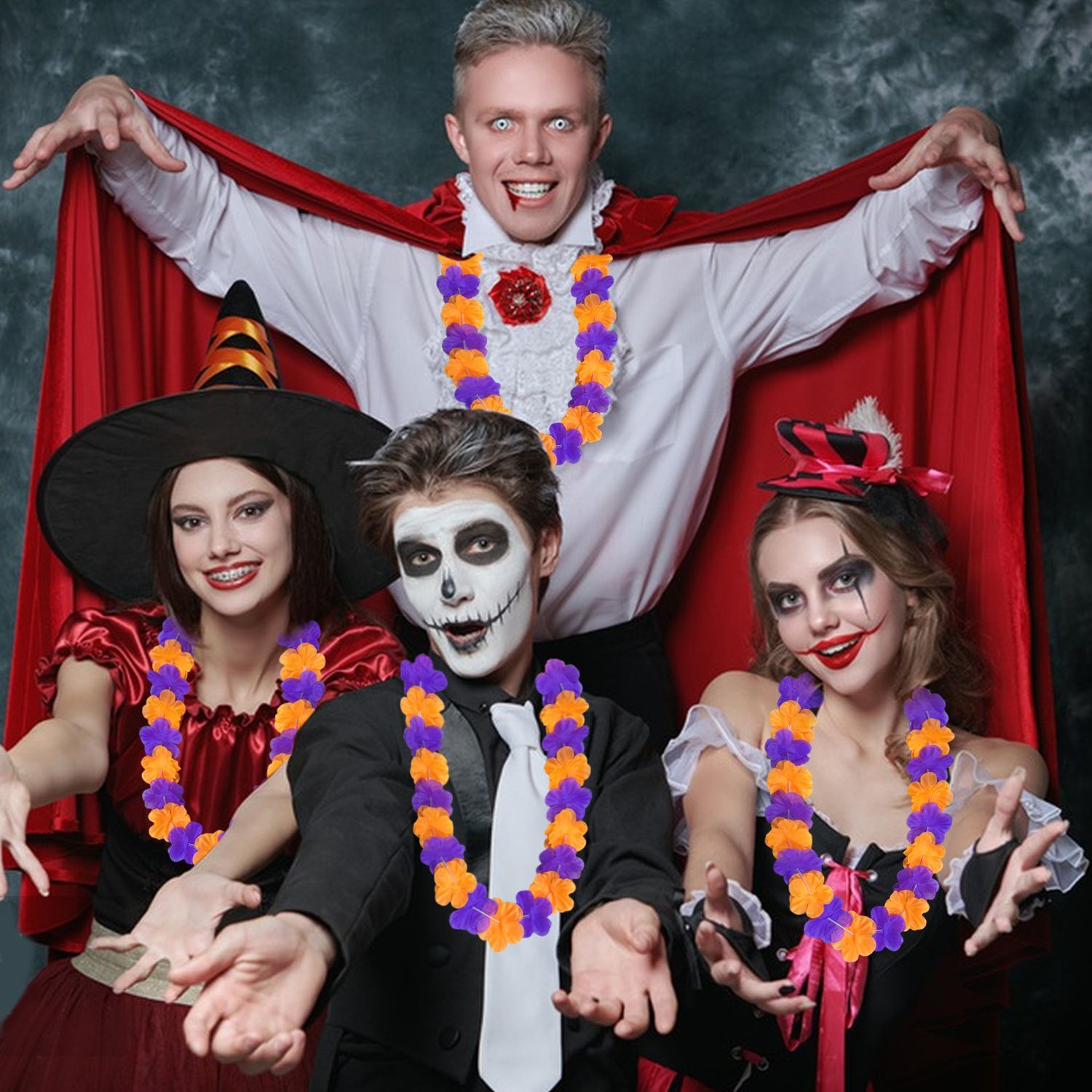 24 Pcs Halloween Leis Hawaiian Leis Necklace Tropical Flower Lei Floral Luau Party Decorations Orange Purple Dance Garland Headbands Photo Booth Photo Props For Halloween Birthday Trick Or Treat Party