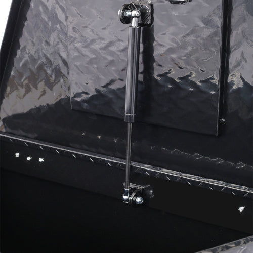 1. Premium quality: This aluminum tool box is engineered to offer high-intensity and corrosion resistance, ensuring that your tools and equipment are well-protected from external elements. 2. Lightweight yet sturdy: The lightweight design of this truck toolbox means it won't add significant weight to your tractor, trailer, or truck. It's also incredibly sturdy, thanks to the 5 bar tread pattern that reinforces the aluminum. 3. Ample storage space: With an overall size of 29"(L) x 16.5"(W) x 18.5"(H), this trailer tool box provides enough storage space to accommodate various tools and accessories, making it ideal for domestic use, garages, and DIY projects. 4. Versatile mounting options: The perfect tool cabinet for anywhere, you can easily mount this tool box on the hitch rack, cargo rack of your camper, tongue of your enclosed trailer, or even at the rear of your RV for extra storage. 5. Secure and convenient: This aluminum box comes with a lock and 2 keys to keep your tools secure and prevent them from getting lost. Additionally, the seal ring design helps protect the internal cleanliness of the toolbox and prevents water and other external factors from penetrating inside.