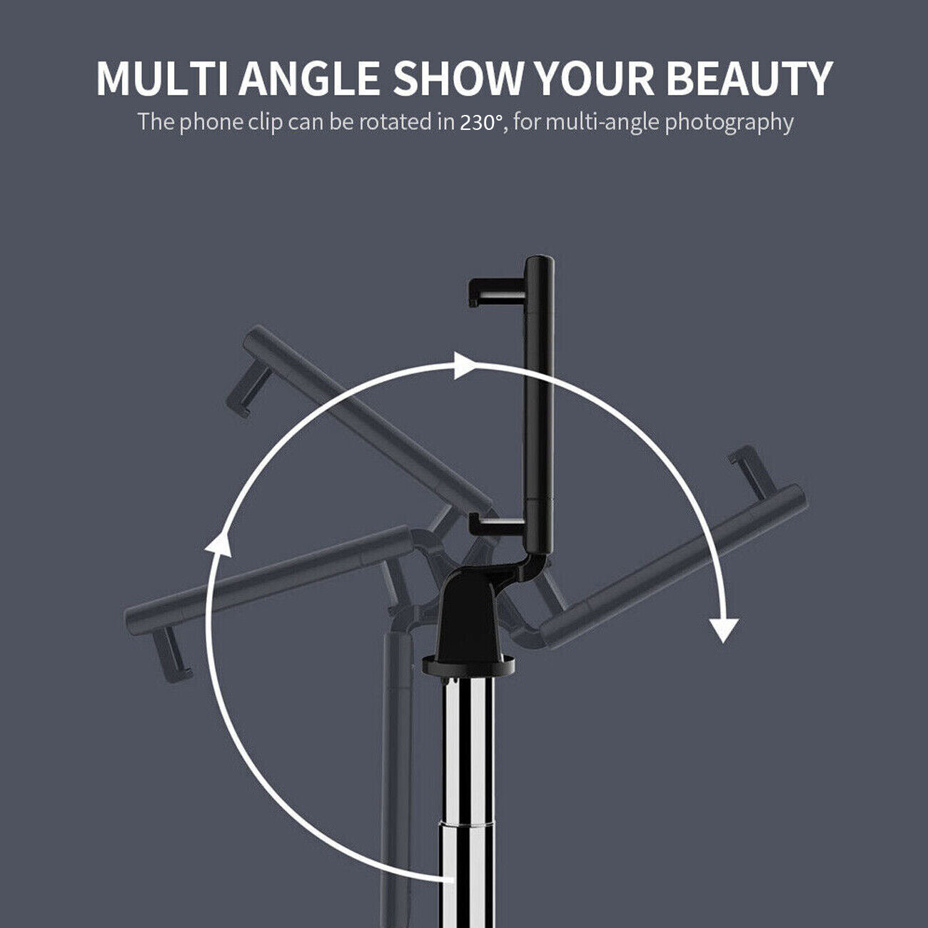 2. Five adjustable gears, 27.5 inch max usage length, 230°rotation head, allows you to get wider photoing range.