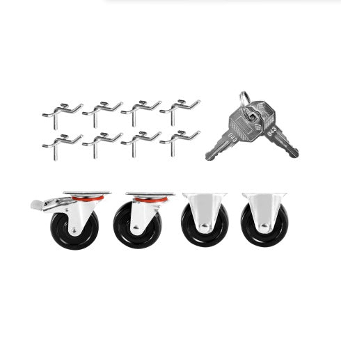 - 360-degree Rotation Wheels: Two flexible 360-degree and secure casters (one of which is lockable) ensure easy and steady movement and help reduce physical strength when moving the garage cart.
