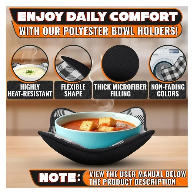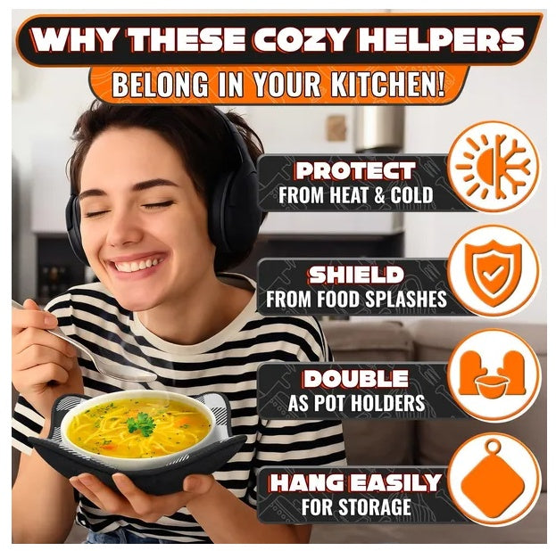 - Non-Slip, Comfortable Grip: Bowl cozies for microwave deliver a secure, non-slip grip, preventing spills. Bowl pot holders for hot food ensure comfort when handling hot items for easier serving