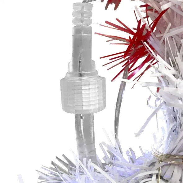 A red and white Christmas Hat in the shape of a Christmas Tree has 1250 bendable branches and 300 LED lights that can house any ornaments and even make your Christmas Hat tree unique.