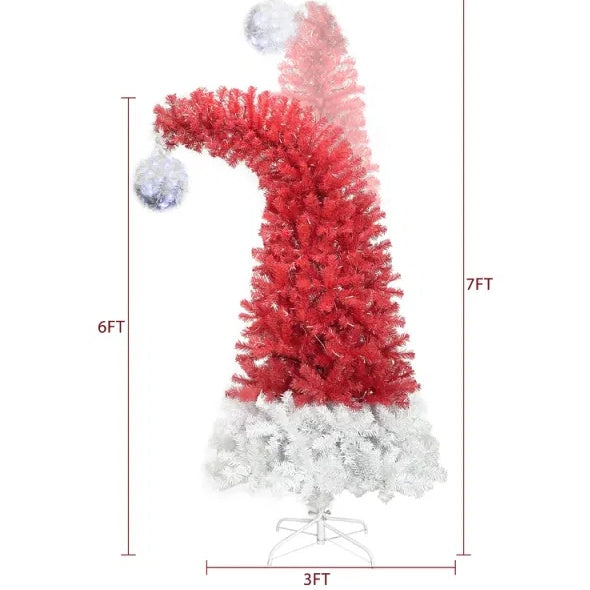 6FT Hinged Fir Artificial Fir Bent Top Christmas Tree, Xmas Tree Bendable Santa Hat Style Christmas Tree Holiday Decoration,1250 Branch Tips, 300 LED Lights X-mas