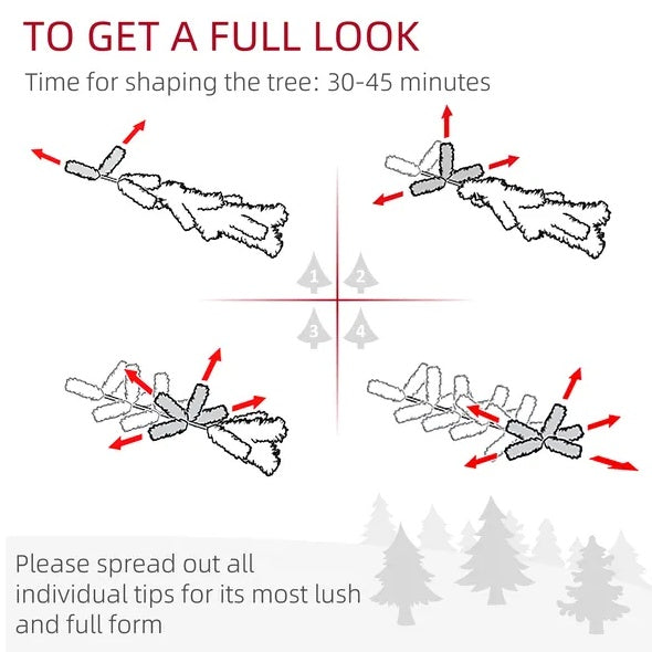 - Flocked Christmas Tree Information: In order to get a full appearance, please spread out all individual tips to get the best possible look from the tree.
