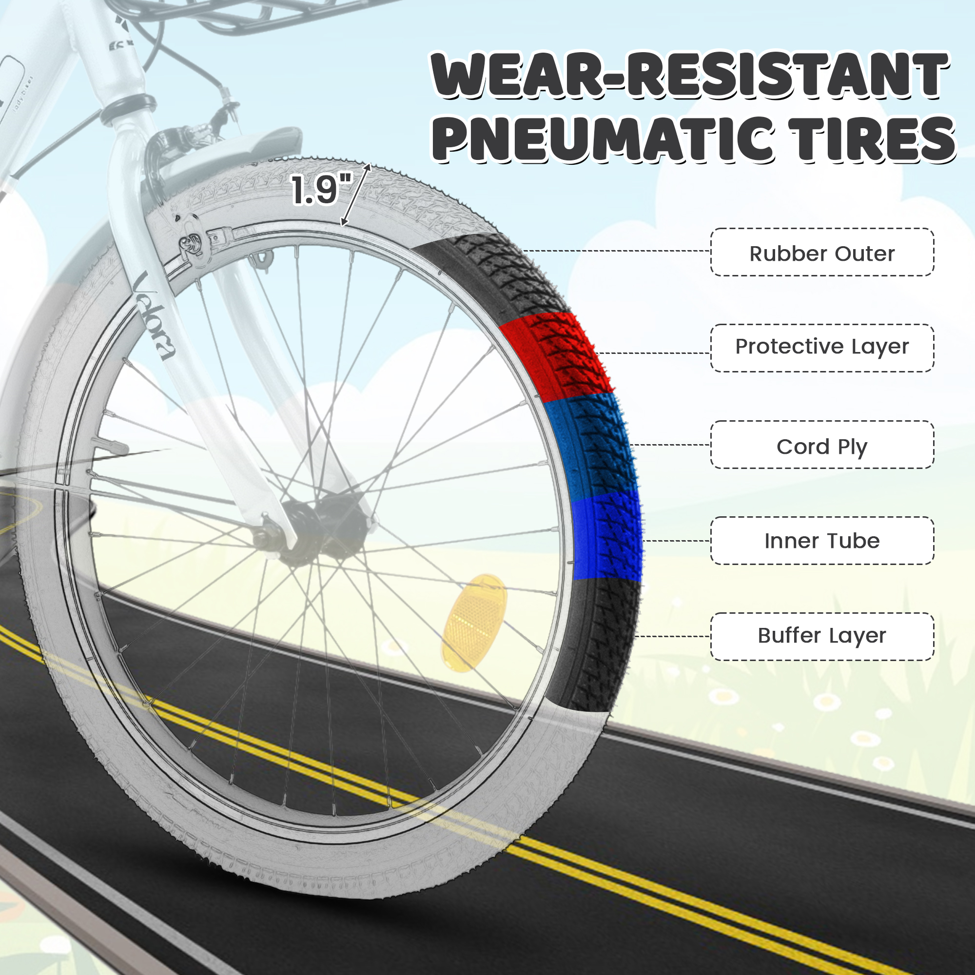 - 【Ideal Size for Young Riders】 This 20-inch bicycle is designed for kids, featuring a lightweight frame and 20" x 1.75" tires for balance and control on sidewalks and paved paths.
