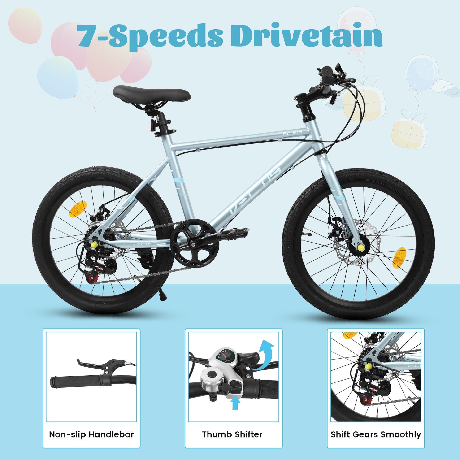 Product Name:A20183 Kids Bike for 6-12 Years Old, 20 Inch Children's Bicycle for Boys Girls, 7-Speed Steel Frame, , Dual Disc Brakes, 20x1.75 Inch Tires Road Bike, 4 Color Options