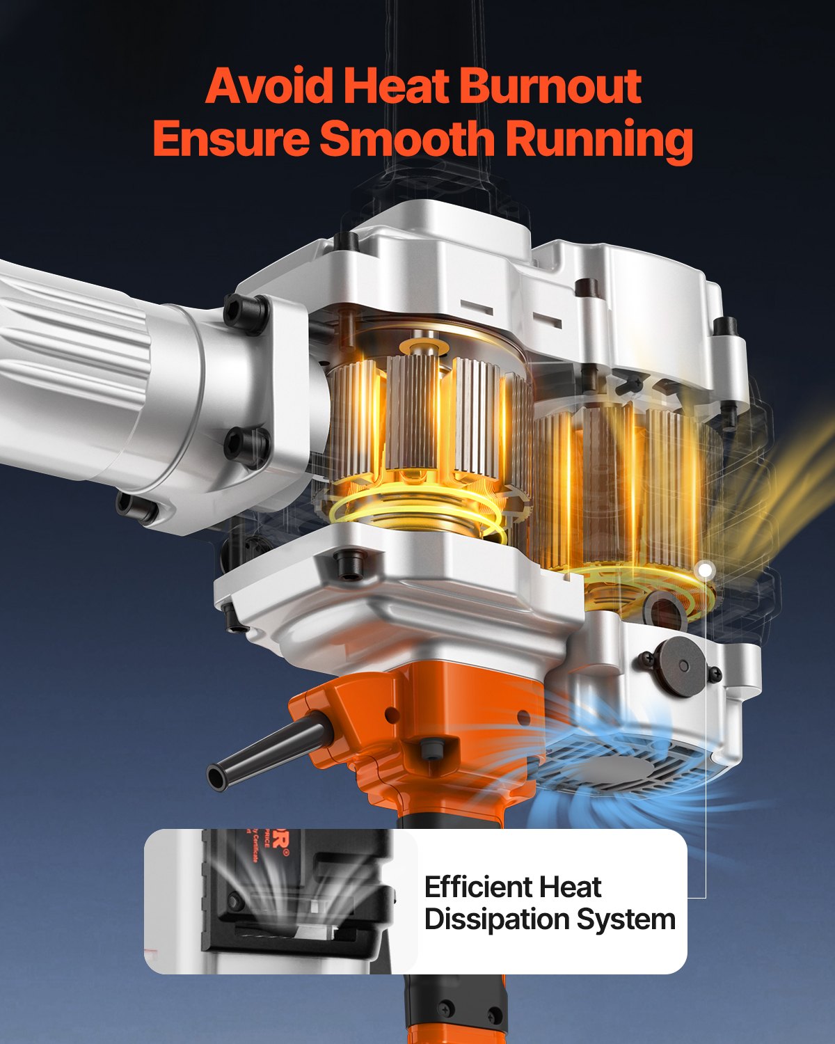 Built to Last: The integrated aluminum body is sturdy and wear-resistant, capable of withstanding accidental drops in harsh working conditions. The quick heat dissipation design ensures the jack hammer concrete breaker doesn't overheat during extended use, prolonging its lifespan and preventing burnout.