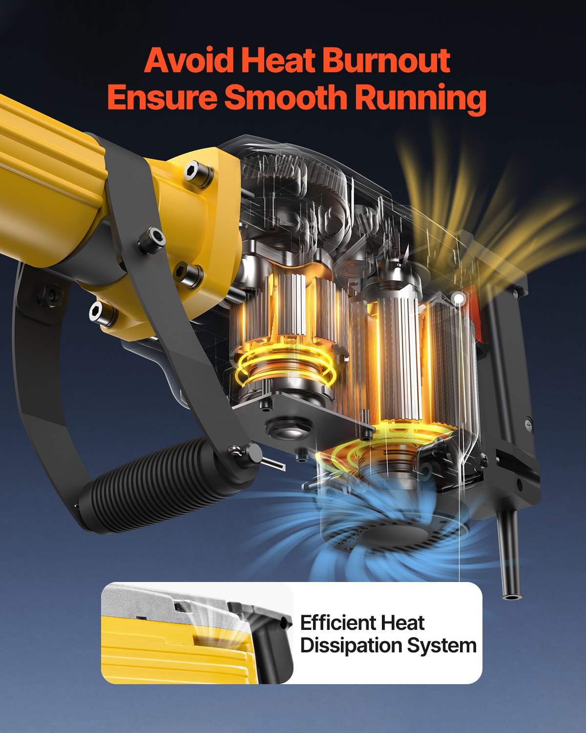 Superior Performance & Top Quality: A 2200W industrial motor with 66J impact energy is designed to complete concrete and metalworking projects quickly and precisely. It is intended for professionals. This electric jack hammer adopts heavy-duty aluminum construction, is highly durable, and is corrosion resistance for long-term use.
