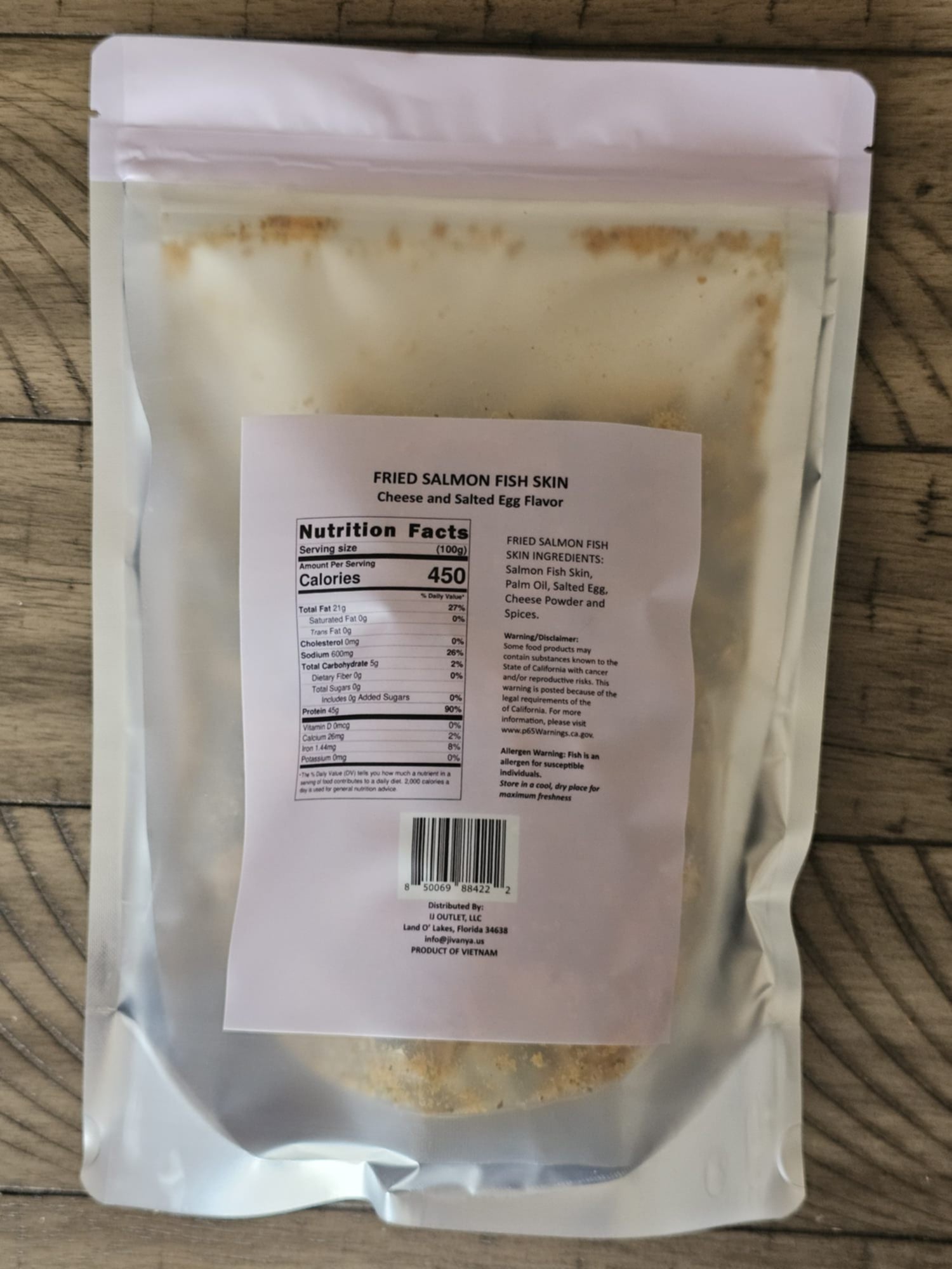 Our Fried Salmon Fish Skin - Spicy is a tasty and nutritious snack made from high-quality salmon skin. Rich in omega-3 fatty acids and protein, it's a guilt-free indulgence that also supports a healthy diet. Satisfy your cravings while boosting your overall well-being with our delicious Fried Salmon Skin.
