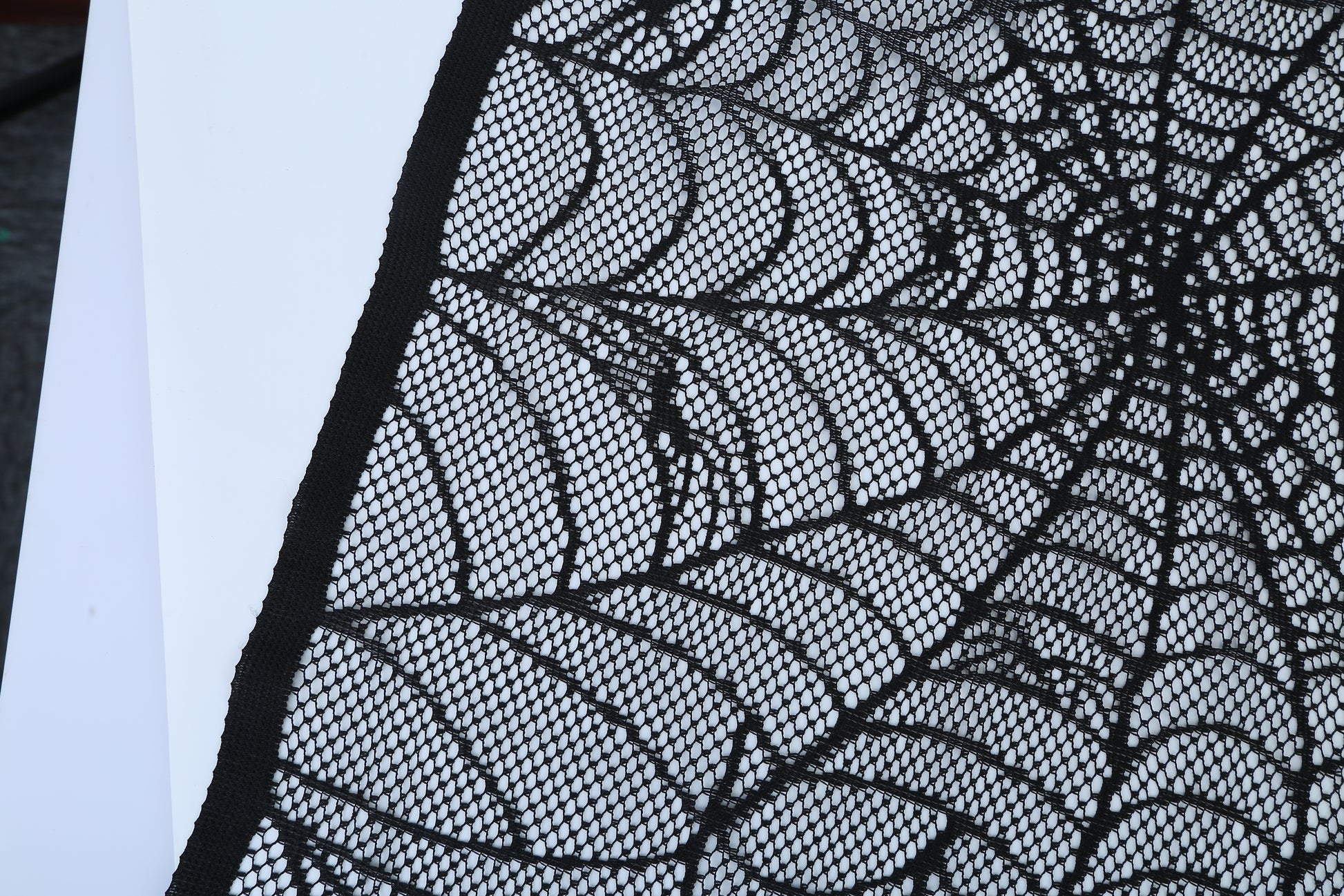 Halloween Decoration Black Lace Spiderweb Fireplace Mantle Scarf Cover Festive Party Supplies Fireplace Scarf 96 X 18 Inch For Halloween Christmas Party Door Window Decoration
