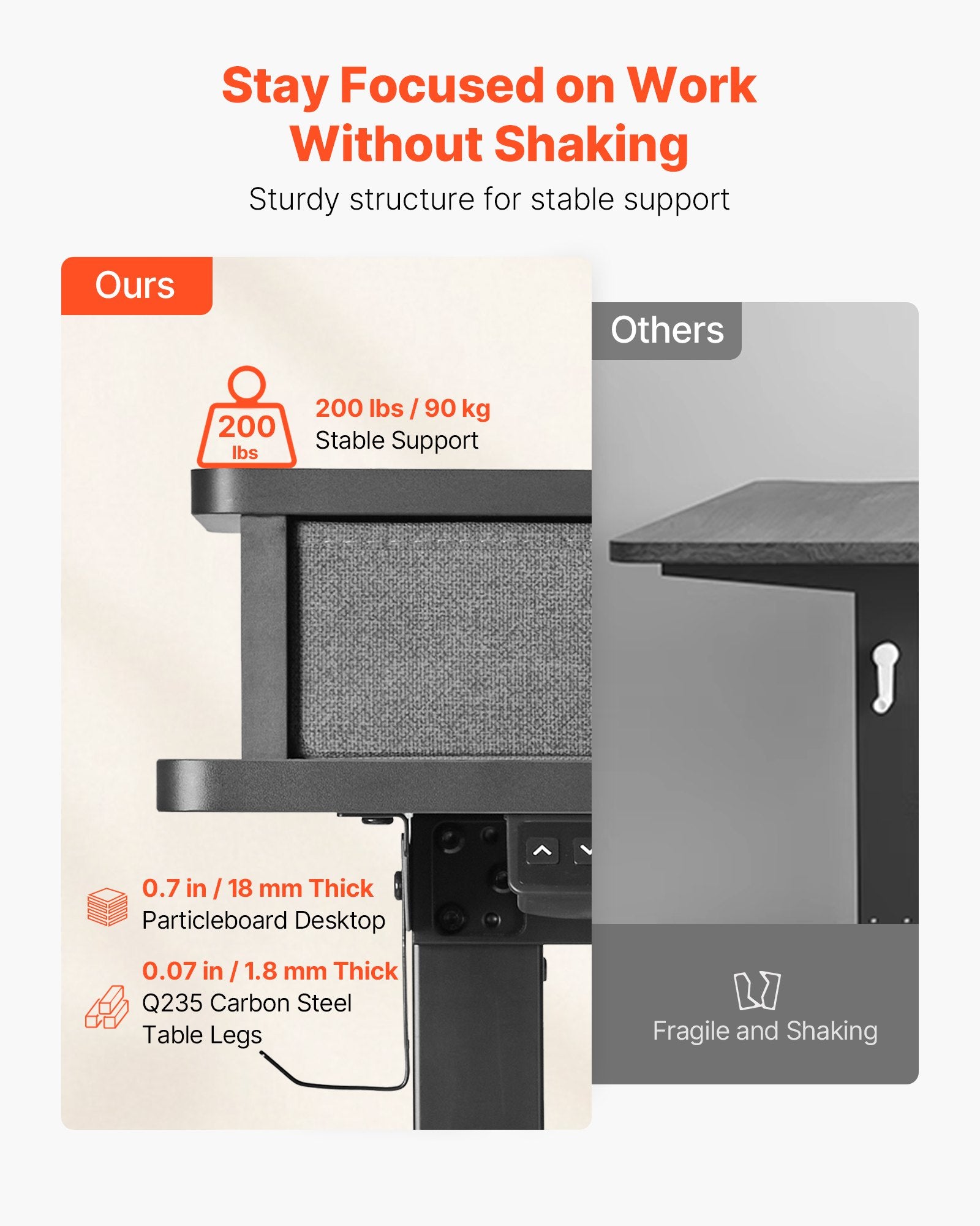 Transform your gaming setup with this L-shaped electric adjustable desk designed for serious gamers and professionals. The corner configuration maximizes workspace, giving you ample room for multiple monitors, peripherals, and equipment. Powered by a smooth electric motor, the height-adjustable surface lets you switch between sitting and standing throughout the day, promoting better posture and reducing fatigue during extended sessions. Built-in drawers provide convenient storage for cables, controllers, and accessories, keeping your gaming area organized and clutter-free. The sturdy construction supports heavy gaming rigs and equipment while the spacious design accommodates your entire setup in one efficient footprint.