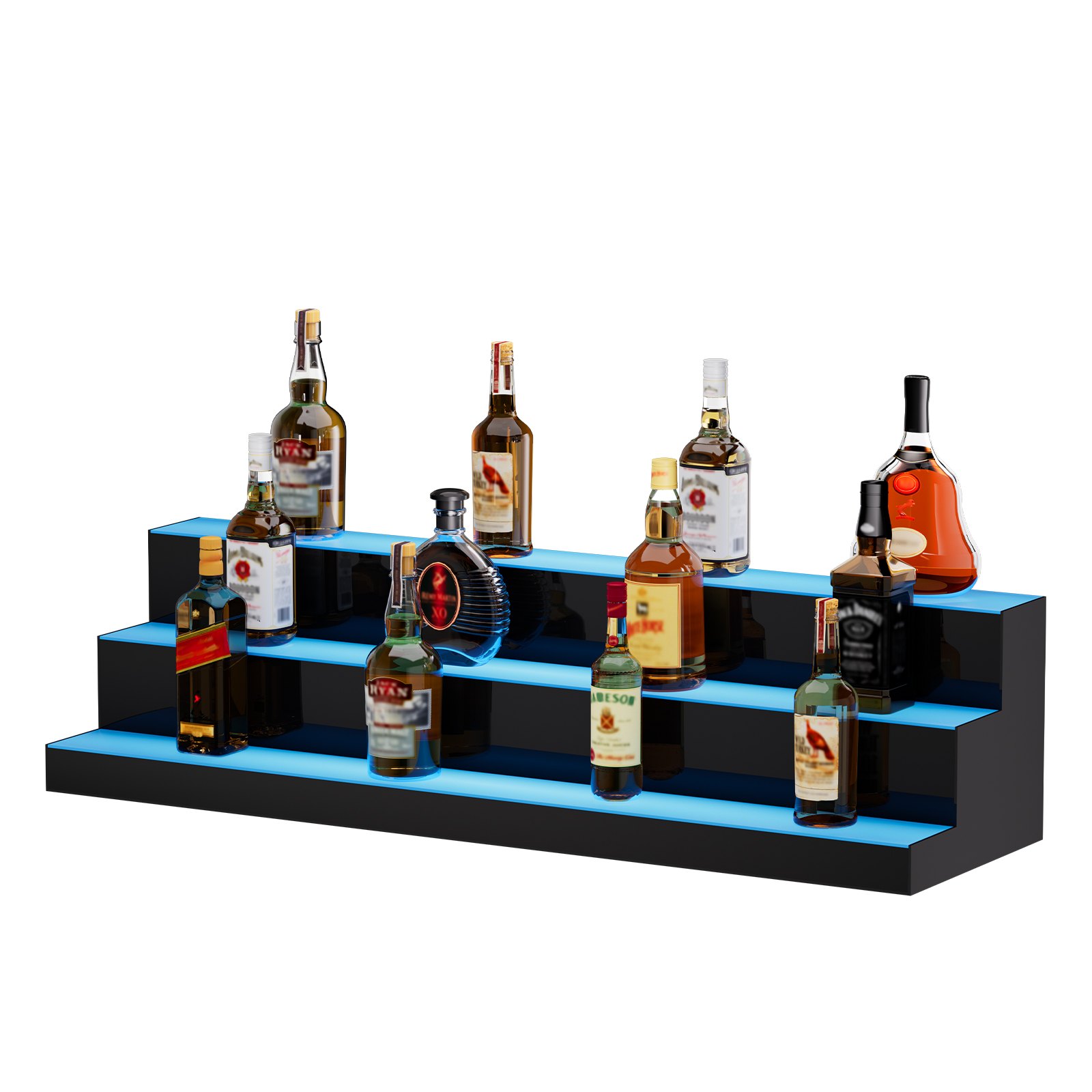 LED Lighted Liquor Bottle Display, 3 Tiers 40 Inches, Illuminated Home Bar Shelf With RF Remote & App Control 7 Static Colors 1-4 H Timing, Acrylic Drinks Lighting Shelf For Holding 30 Bottles