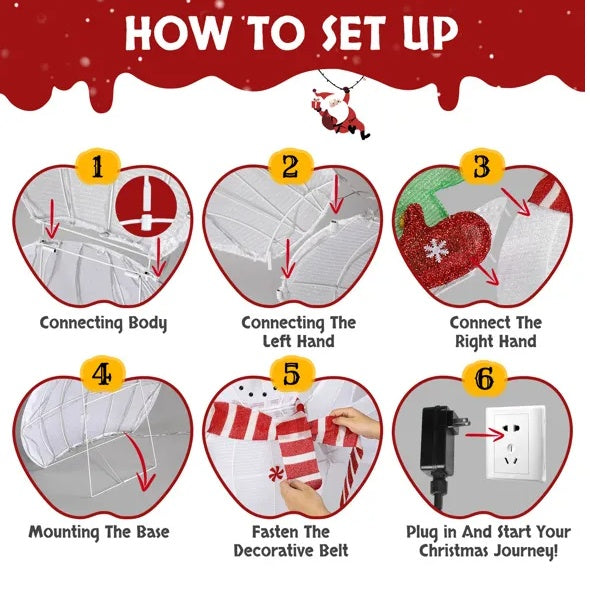 3. Easy Assembly and Storage: This collapsible Xmas decoration can be set up in minutes, allowing you to enjoy your festive display without hassle. Once the holiday season is over, the snowman easily folds down into a compact size for convenient storage.