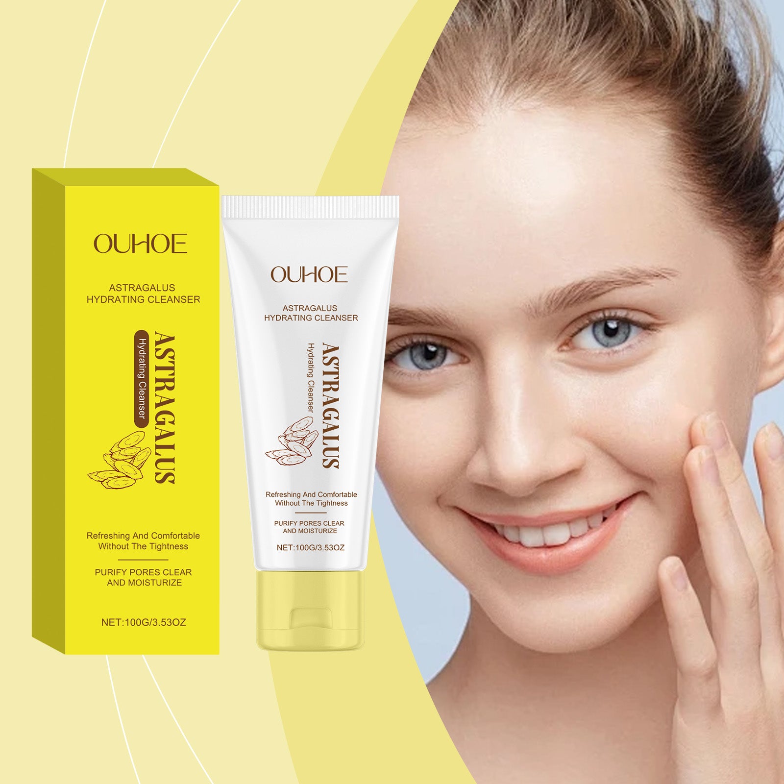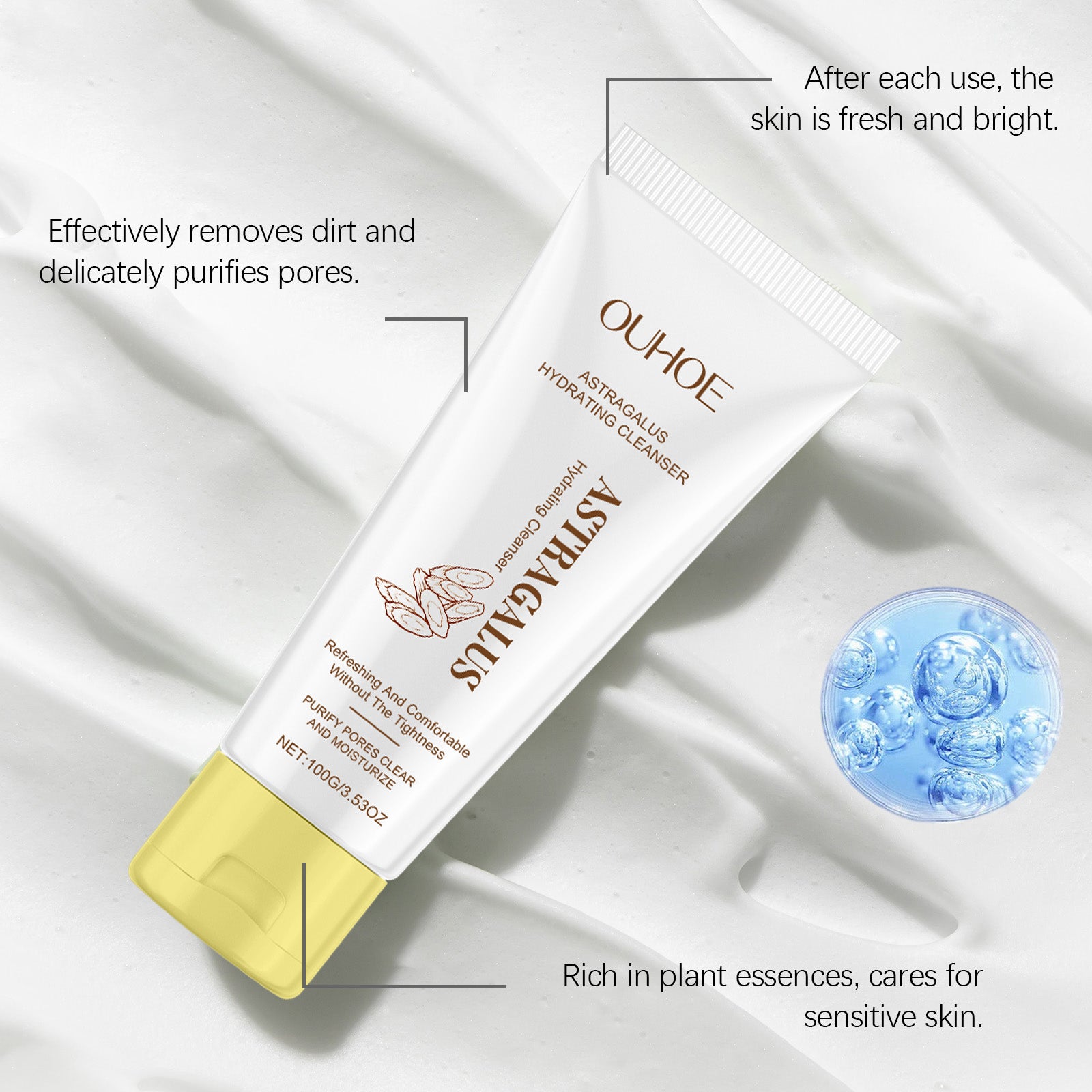 OUHOE Astragalus Cleanser, Gently Cleanses Facial Skin With Refreshing, Moisturizing And Hydrating Facial Cleanser
