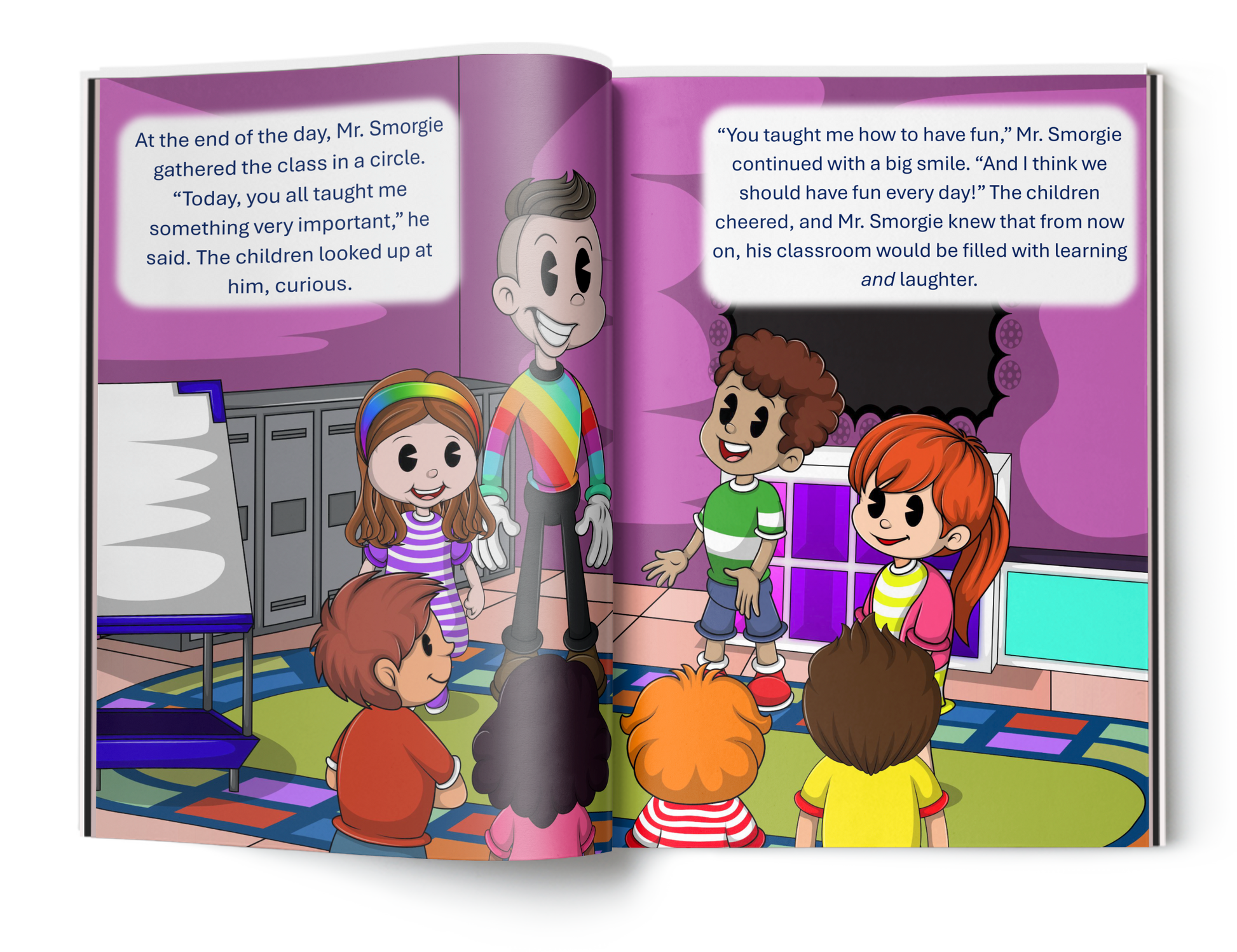 As the story unfolds, Mr. Smorgie discovers that fun and learning go hand-in-hand. Through exciting activities, creative games, and moments of laughter, his students show him the joy that can be found in every lesson. With their help, Mr. Smorgie learns how to embrace the fun side of learning, making each day in class an adventure.