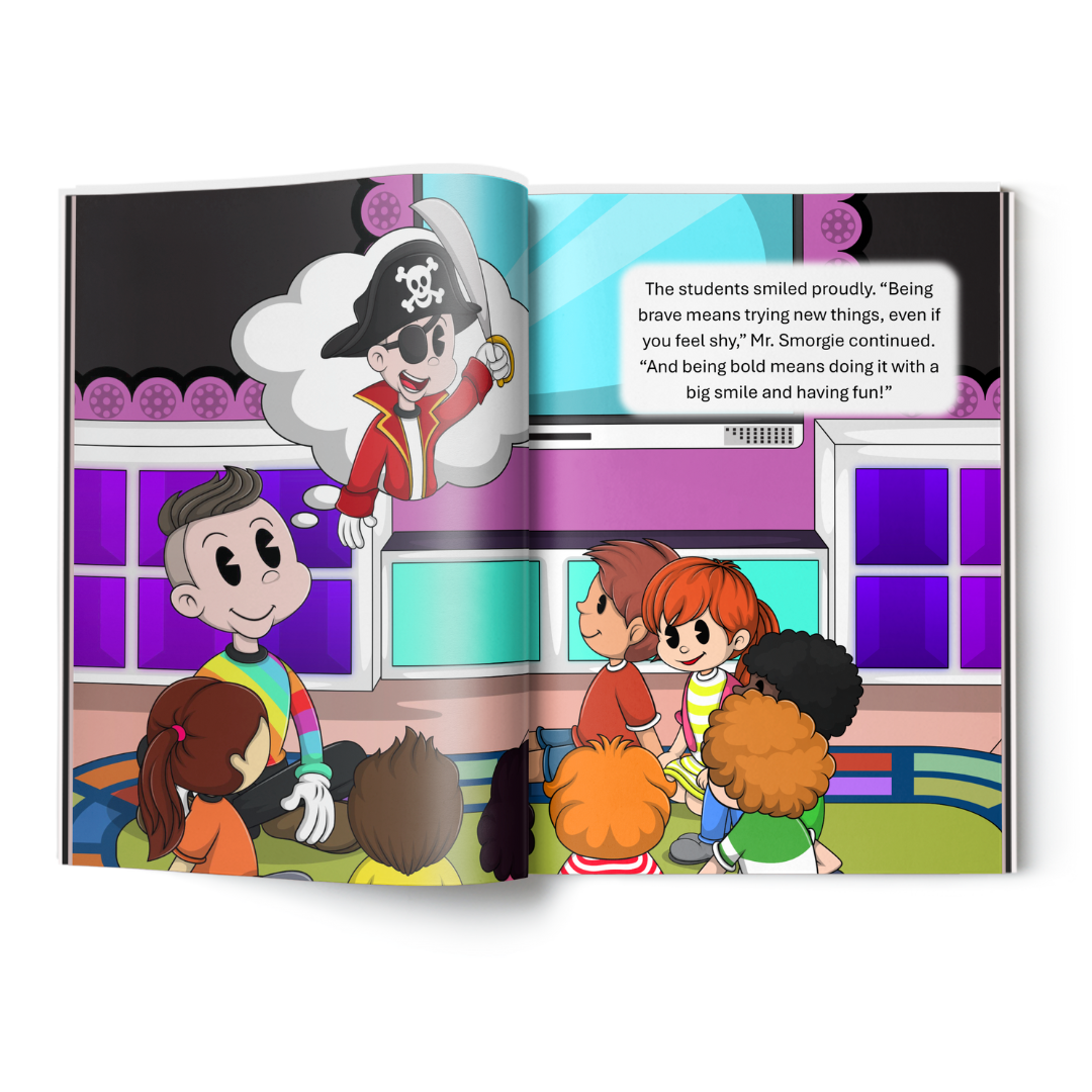 In Smorgie's Bold Costume Adventure, Mr. Smorgie is a teacher who loves teaching but is a little shy when it comes to trying new things—especially when it involves dressing up. When his students excitedly announce that Costume Day is coming, Mr. Smorgie feels nervous and unsure. Instead of picking a fun costume, he decides to come to school in his regular clothes.