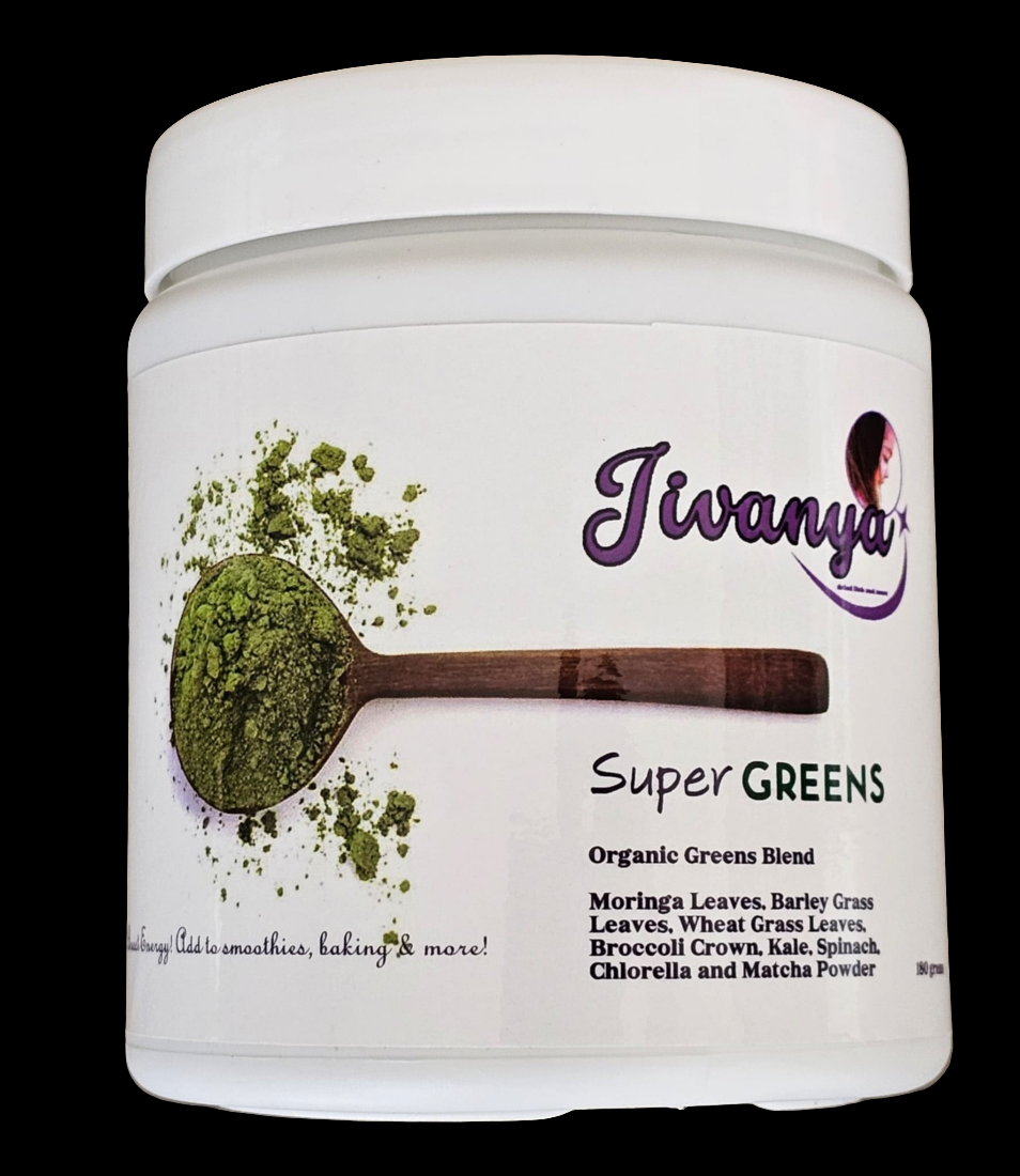 Boost your health and wellness with Super Greens, a powerful blend of super greens that provide essential vitamins and nutrients. Experience increased energy, improved digestion, and a strengthened immune system with each serving. Trust the expertise of our all-natural, scientifically formulated product. share Jivanya Super Greens with your family. Join us in our mission to make healthy eating easy and accessible for everyone!