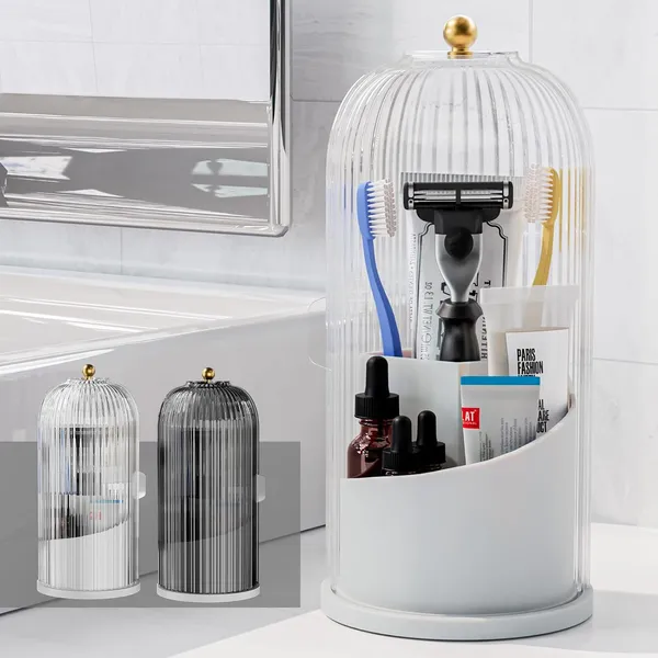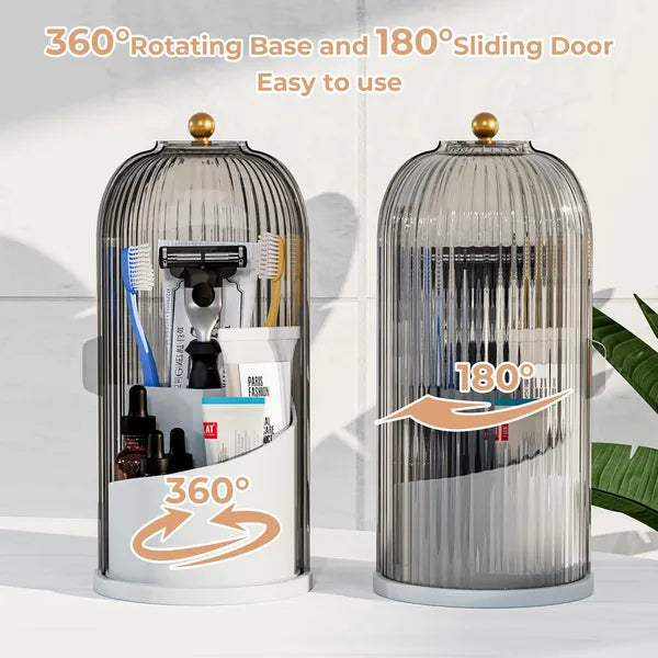 [Toothbrush Holder Within Reach] This bathroom accessory holder features a 180° sliding lid, effectively shielding it from dust and water, keeping the interior clean. The toothbrush storage box rotates 360° inside, allowing for flexible storage of toiletries at various angles. Perfect for storing your toothbrushes and toothpaste, place it by the bathroom mirror or on your dressing table, and simply rotate it for easy access when needed.