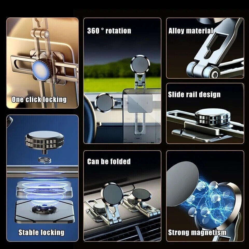 Universal 360 Degrees Rotation Magnetic Car Dashboard Cell Phone Holder Foldable Mount