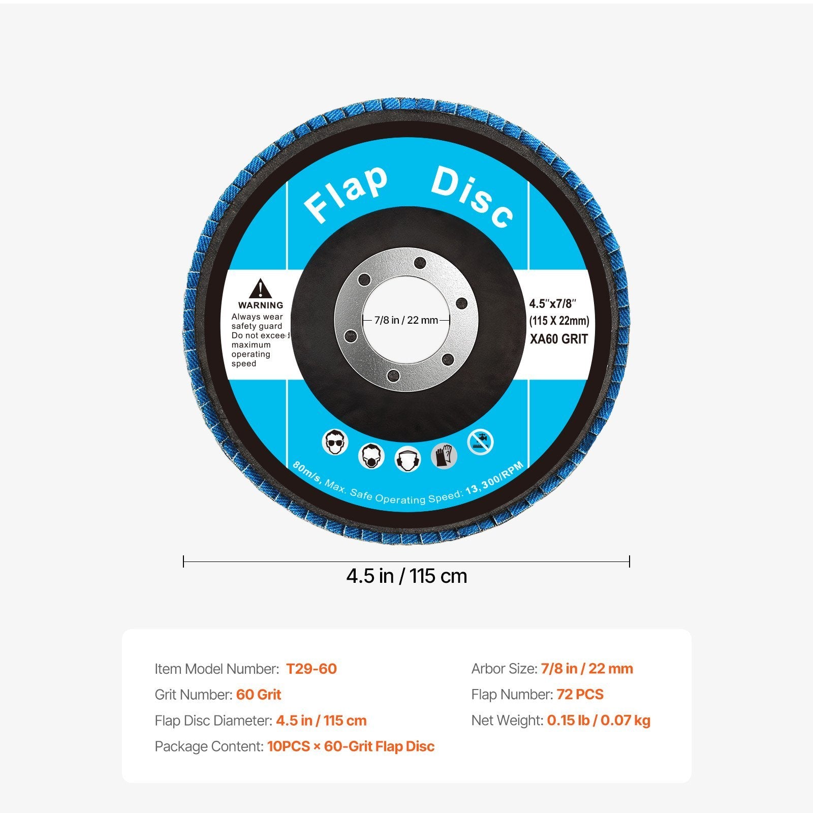 VEVOR Flap Discs Sanding Disc For Angle Grinder 60 Grit 10 Packs