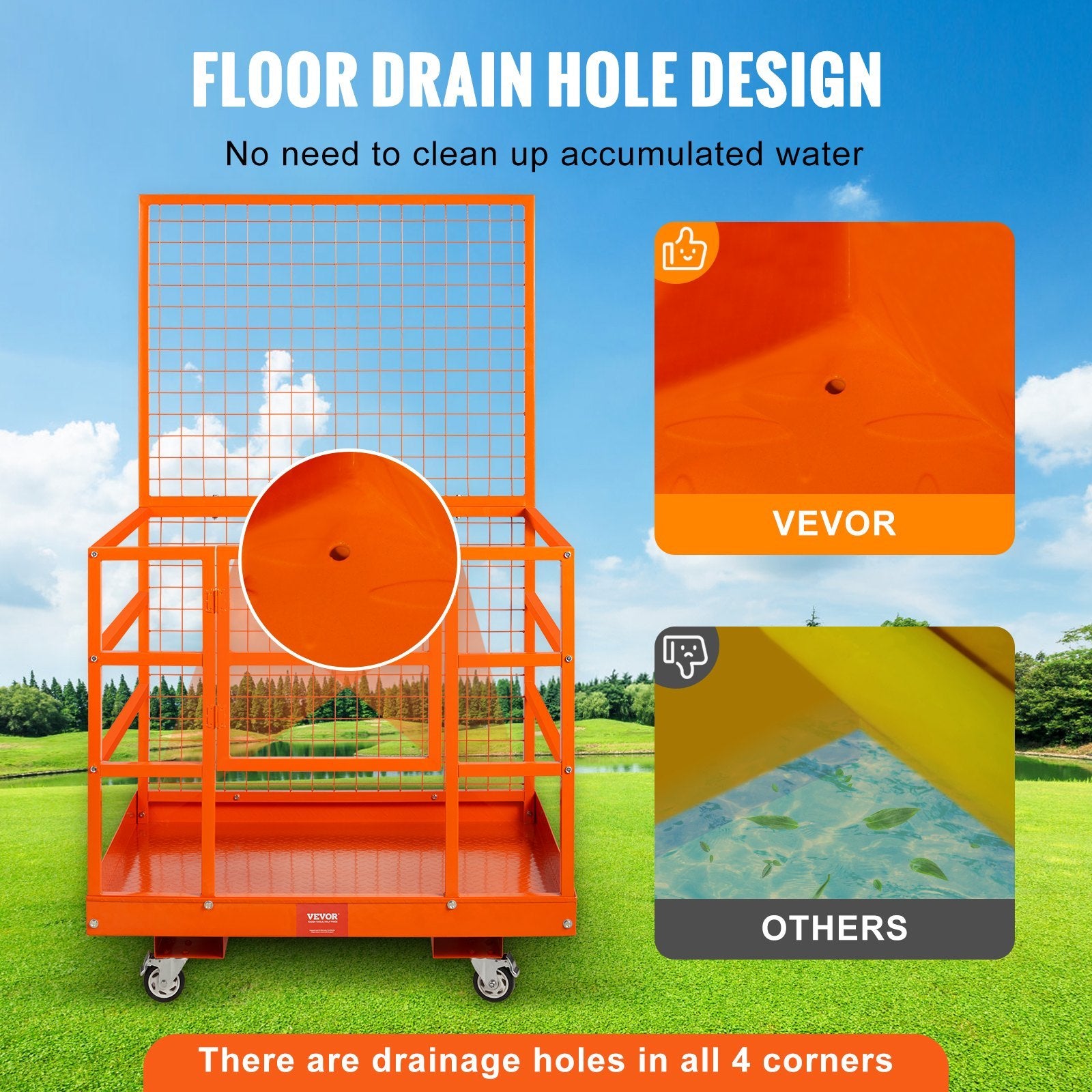 VEVOR Forklift Safety Cage Work Platform 43X45in 1400lbs W Wheels For Aerial