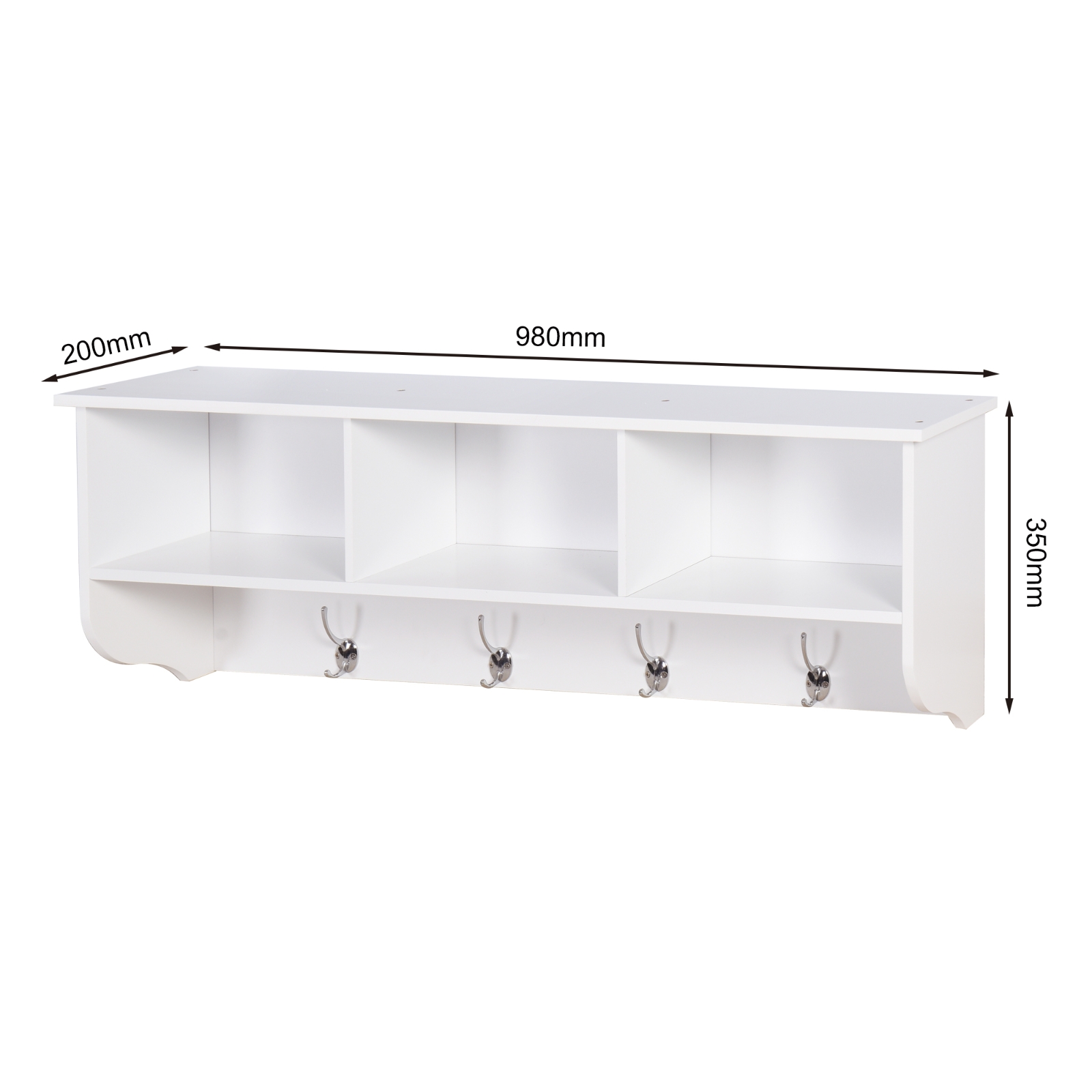 White Entryway Wall Mounted Coat Rack with 4 Dual Hooks Living Room Wooden Storage Shelf