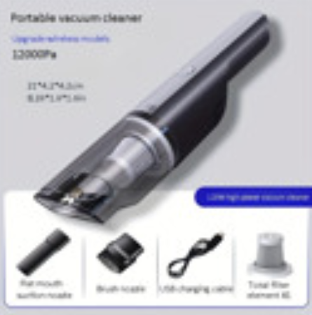 Let me introduce to you the wireless silver-colored car-mounted vacuum cleaner. This is a stylish and powerful handheld device specially designed for cleaning tasks in cars and at home. Its main features include: