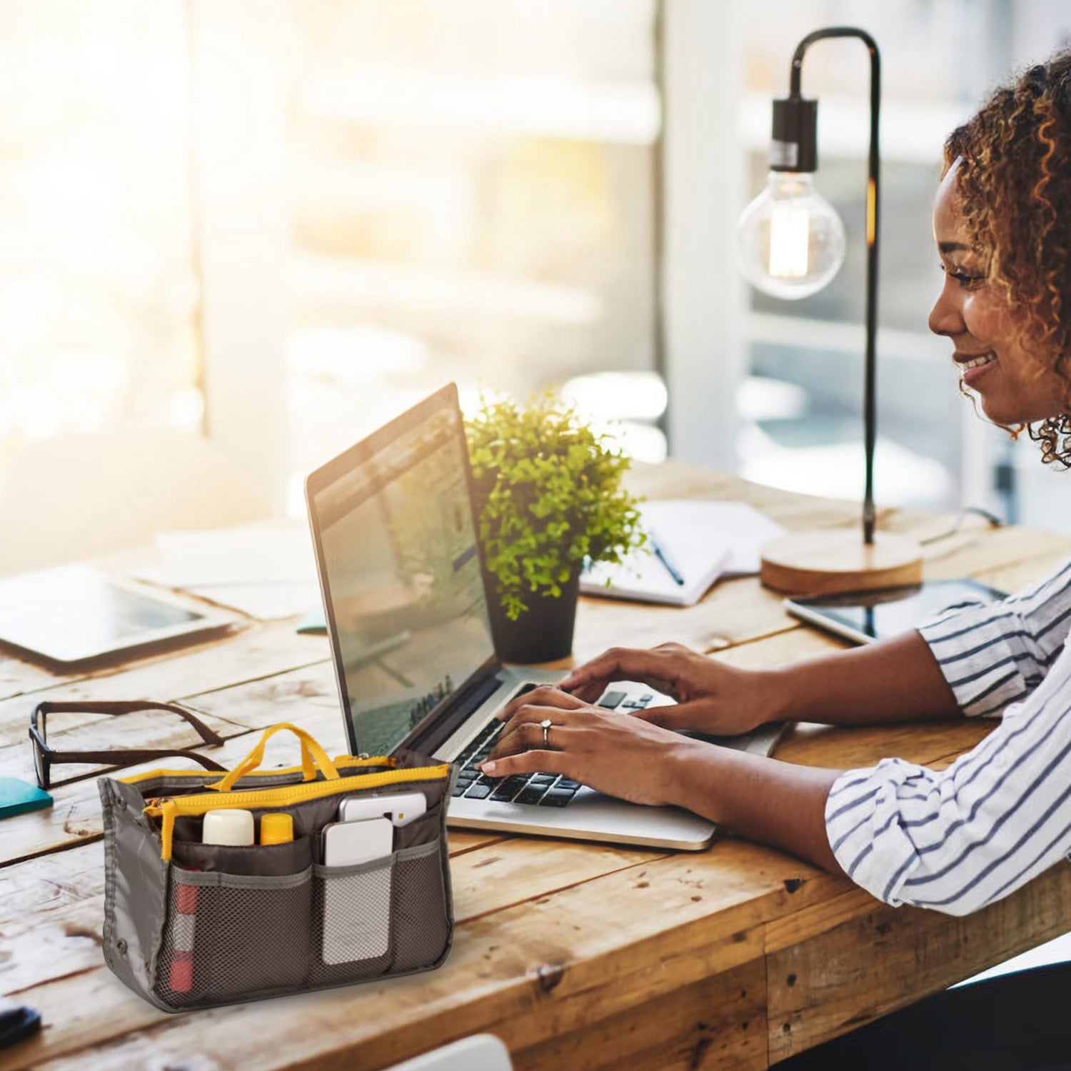 Keep your essentials organized and accessible with this versatile handbag organizer. Designed for travelers and busy professionals, this insert features multiple compartments for makeup, toiletries, and personal items, preventing clutter and damage inside your purse. The sturdy hand strap allows easy removal and portability between bags, while the durable construction withstands daily use. Perfect for maintaining order whether you're commuting, traveling, or managing multiple handbags throughout your week.