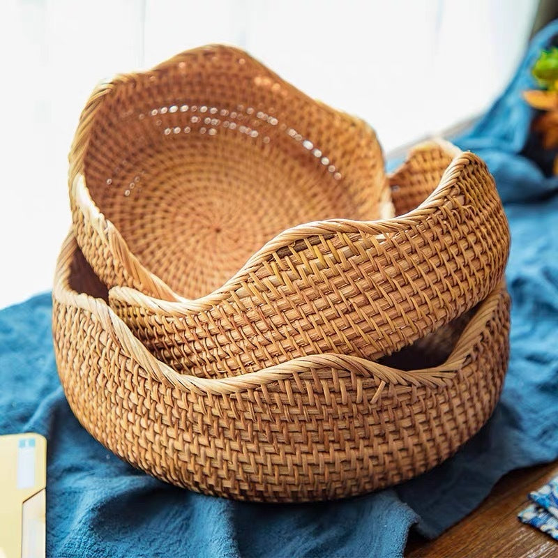 Woven Scalloped Rattan Holds Fruit Baskets, Candies, Snacks And Snack Plates